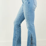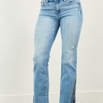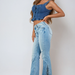 Дамски дънки Лиана | Разкроени крака с цепка в синьо