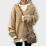 Аурора - Прекалено голям плетен пуловер с кабелен модел