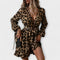 Шикозна рокля с леопардов принт, V-образно деколте и колан